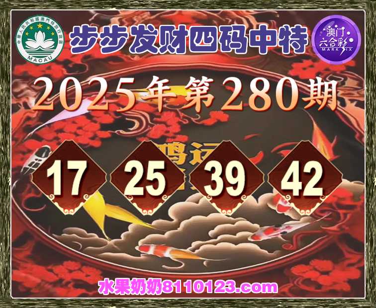 280期:【步步发财】 🎪四码中特🎪【17.25.39.42】开:42准上榜高手