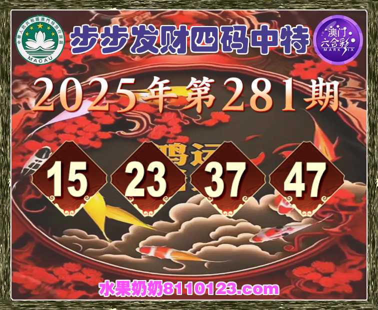 281期:【步步发财】 🎪四码中特🎪【15.23.37.47】开:47准上榜高手