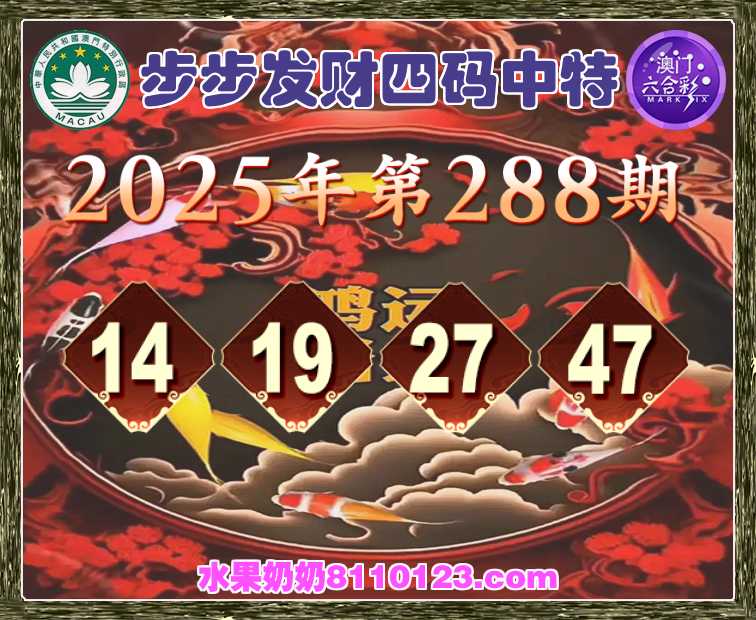 288期:【步步发财】 🎪四码中特🎪【14.19.27.47】开:14准上榜高手