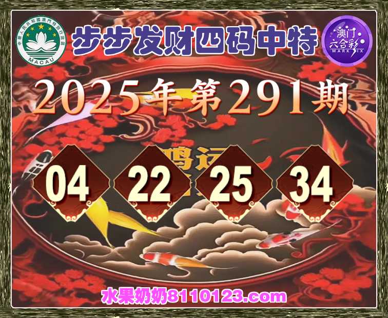 291期:【步步发财】 🎪四码中特🎪【04.22.25.34】开:44错
