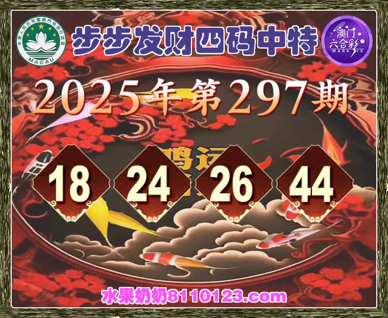 297期:【步步发财】 🎪四码中特🎪【18.24.26.44】开:44准上榜高手