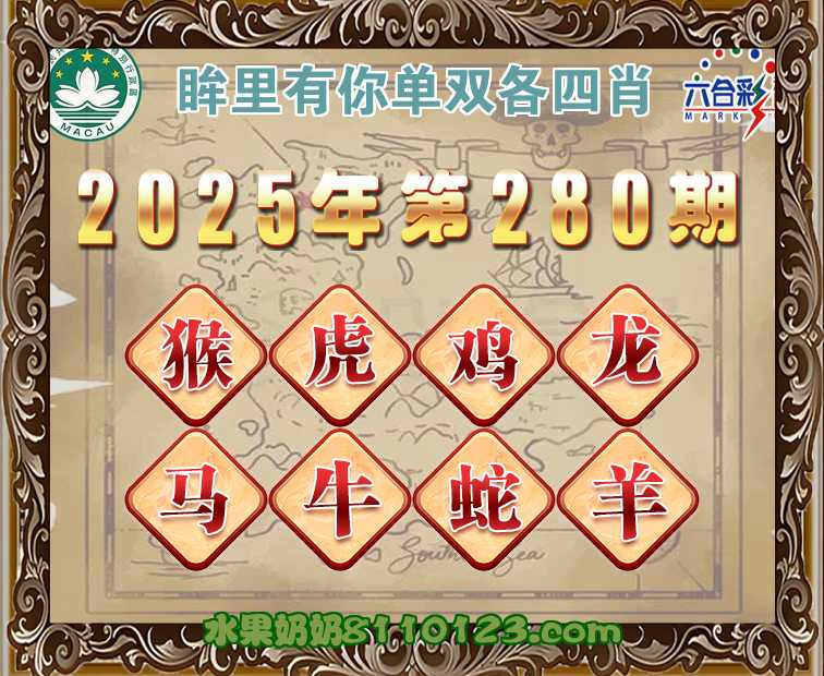 280期:《眸里有你》 ♣️单双各四肖♣️开:鼠42错