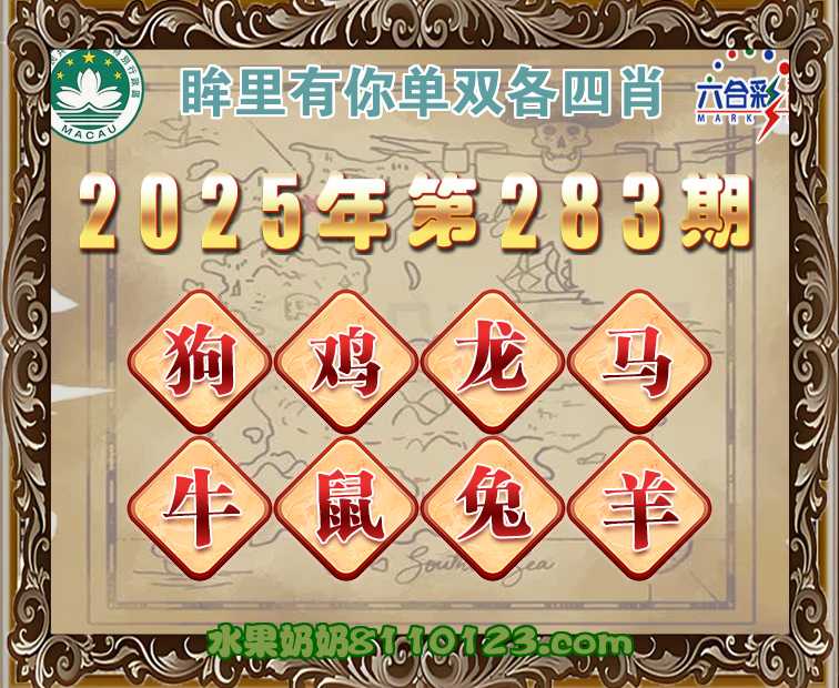 283期:《眸里有你》 ♣️单双各四肖♣️开:鸡45准上榜高手