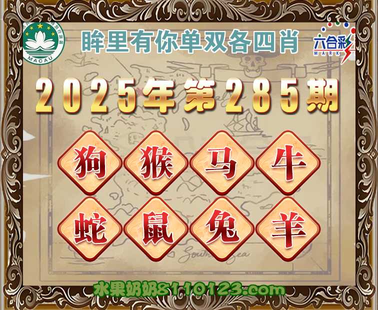 285期:《眸里有你》 ♣️单双各四肖♣️开:马24准上榜高手