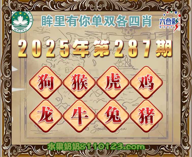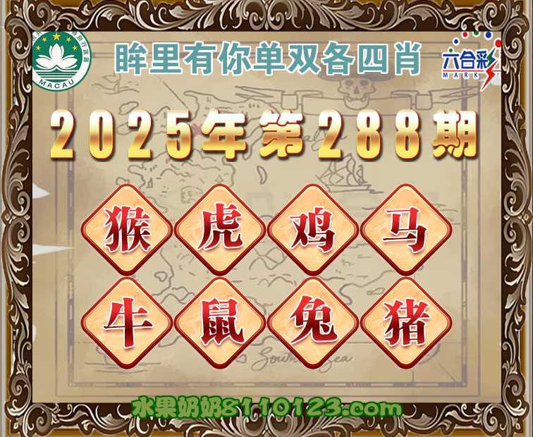 287期:《眸里有你》 ♣️单双各四肖♣️开:猴34准上榜高手