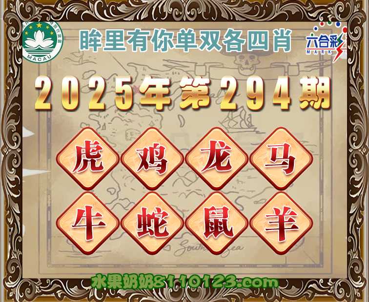 294期:《眸里有你》 ♣️单双各四肖♣️开:鼠18准上榜高手