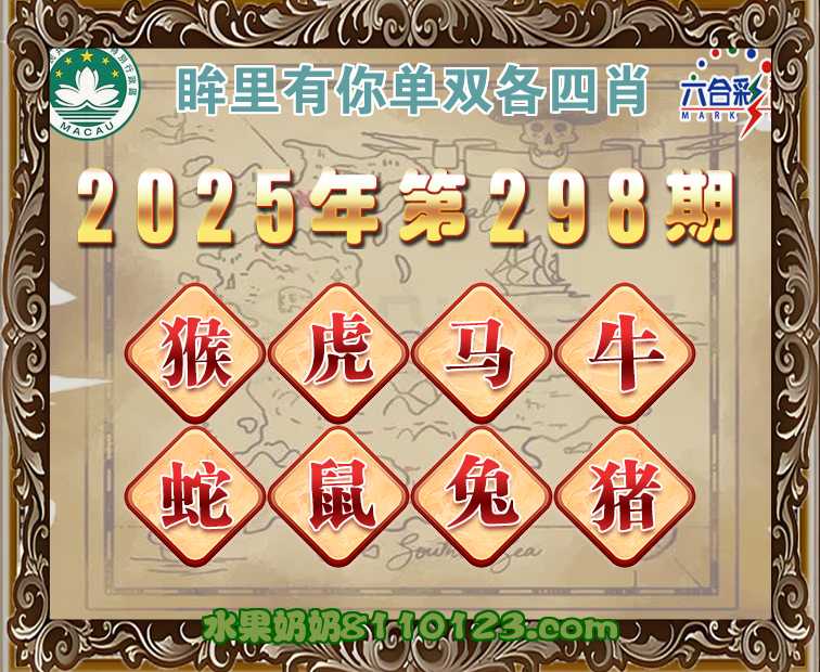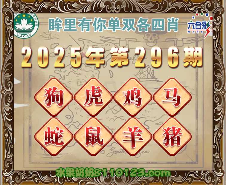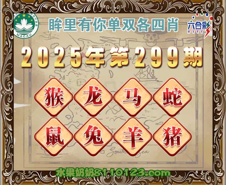 296期:《眸里有你》 ♣️单双各四肖♣️开:猴22错
