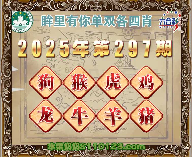 297期:《眸里有你》 ♣️单双各四肖♣️开:狗44准上榜高手