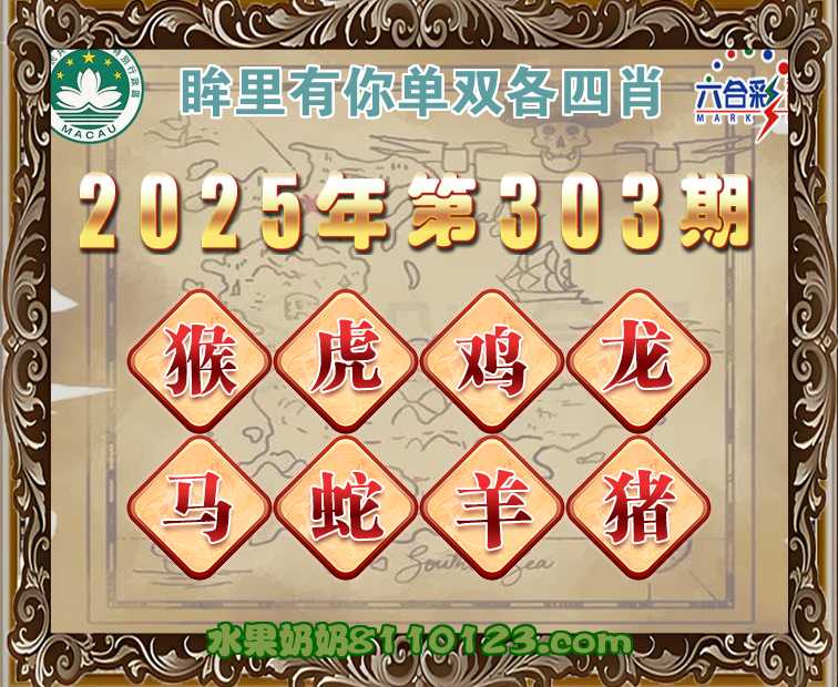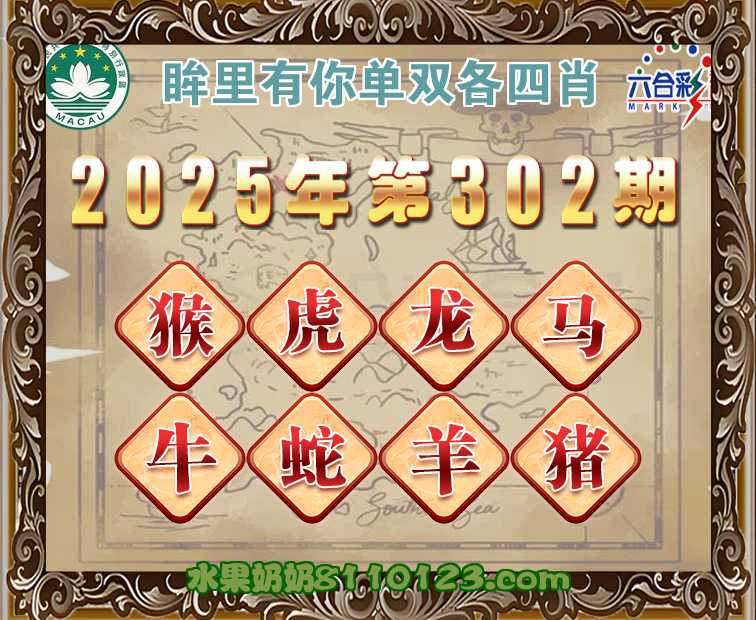 302期:《眸里有你》 ♣️单双各四肖♣️开:猴22准上榜高手