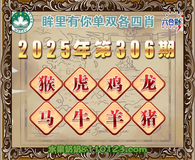 306期:《眸里有你》 ♣️单双各四肖♣️开:00准