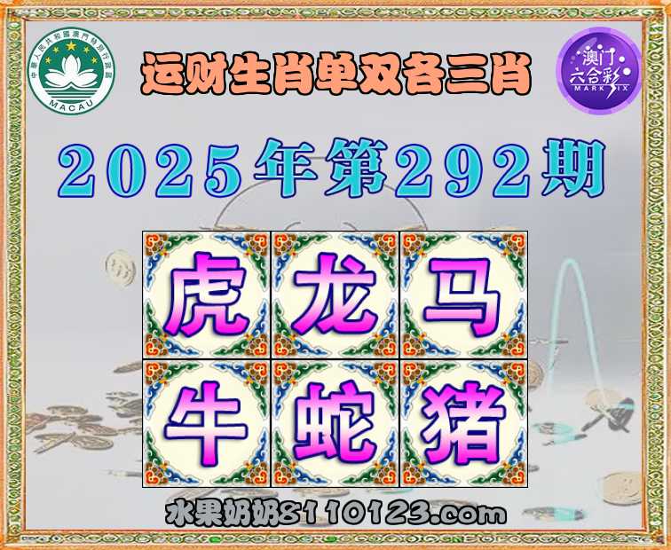 292期:〖运财生肖〗 🍁单双各三肖🍁【虎.龙.马.牛.蛇.猪】开:龙02准