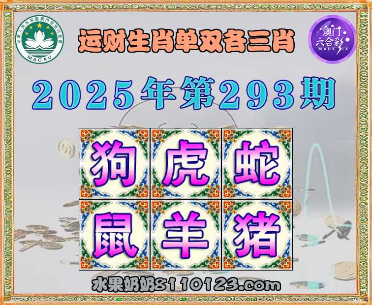 293期:〖运财生肖〗 🍁单双各三肖🍁【狗.虎.蛇.鼠.羊.猪】开:羊47准