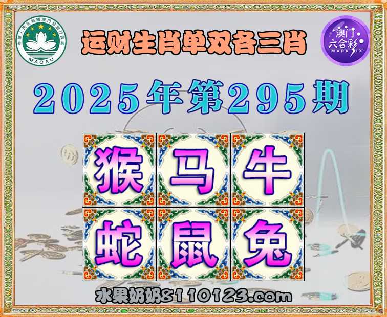 295期:〖运财生肖〗 🍁单双各三肖🍁【猴.马.牛.蛇.鼠.兔】开:牛05准