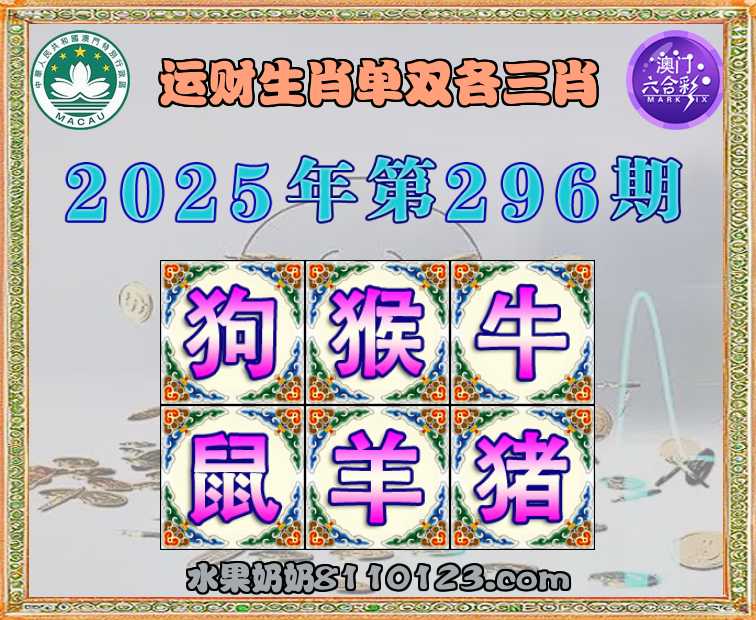296期:〖运财生肖〗 🍁单双各三肖🍁【狗.猴.牛.鼠.羊.猪】开:猴22准
