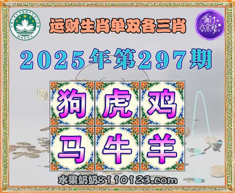 297期:〖运财生肖〗 🍁单双各三肖🍁【狗.虎.鸡.马.牛.羊】开:狗44准