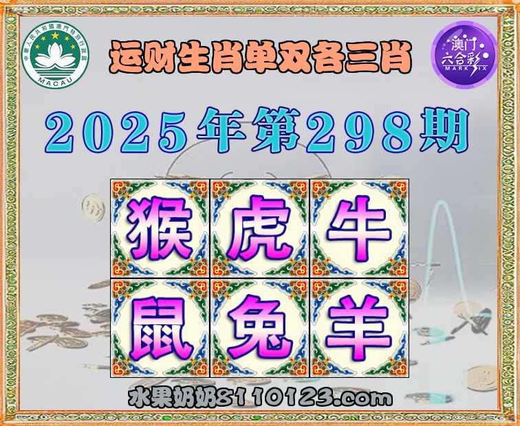 298期:〖运财生肖〗 🍁单双各三肖🍁【猴.虎.牛.鼠.兔.羊】开:羊23准
