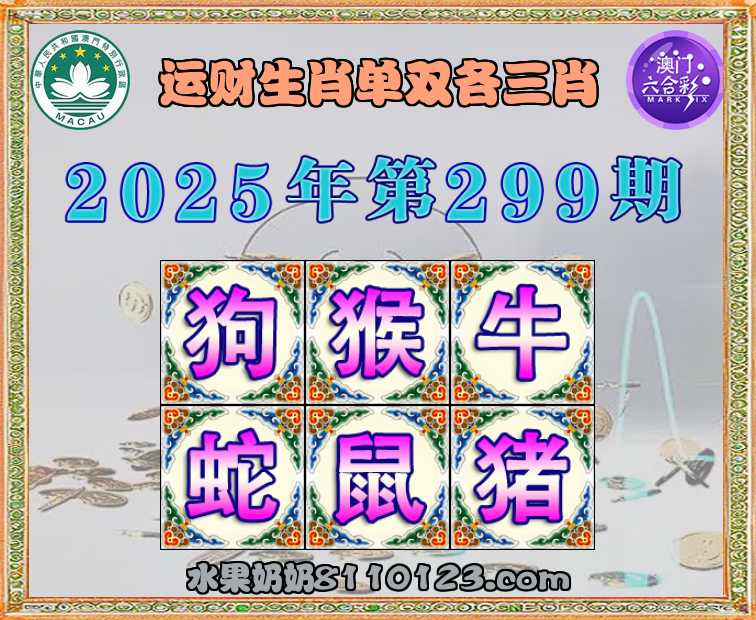 299期:〖运财生肖〗 🍁单双各三肖🍁【狗.猴.牛.蛇.鼠.猪】开:蛇49准