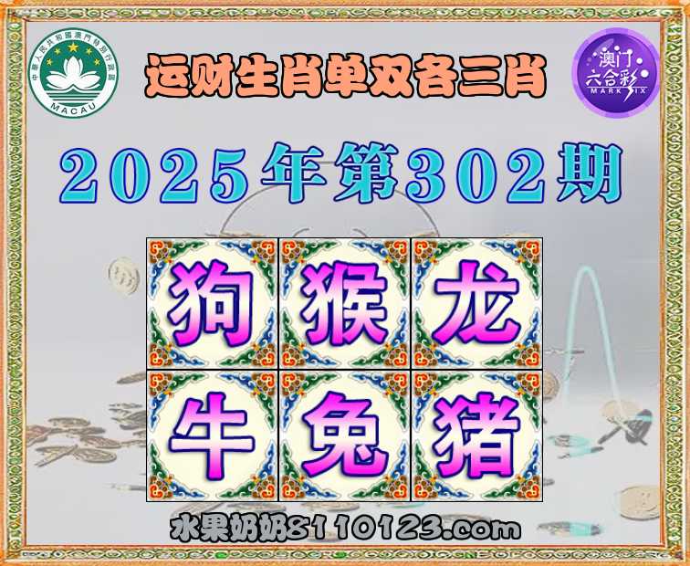 302期:〖运财生肖〗 🍁单双各三肖🍁【狗.猴.龙.牛.兔.猪】开:猴22准