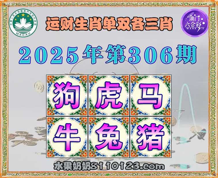 306期:〖运财生肖〗 🍁单双各三肖🍁【狗.虎.马.牛.兔.猪】开:00准