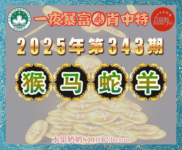 343期:《一夜暴富》 🧏♀️④肖中特🧏♀️【猴.马.蛇.羊】开:龙38错