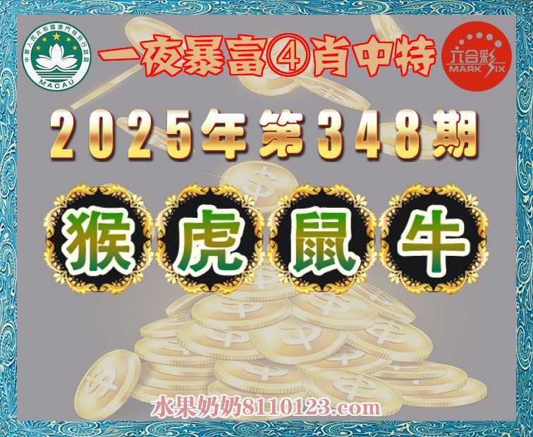 348期:《一夜暴富》 🧏♀️④肖中特🧏♀️【猴.虎.鼠.牛】开:虎16准上榜高手