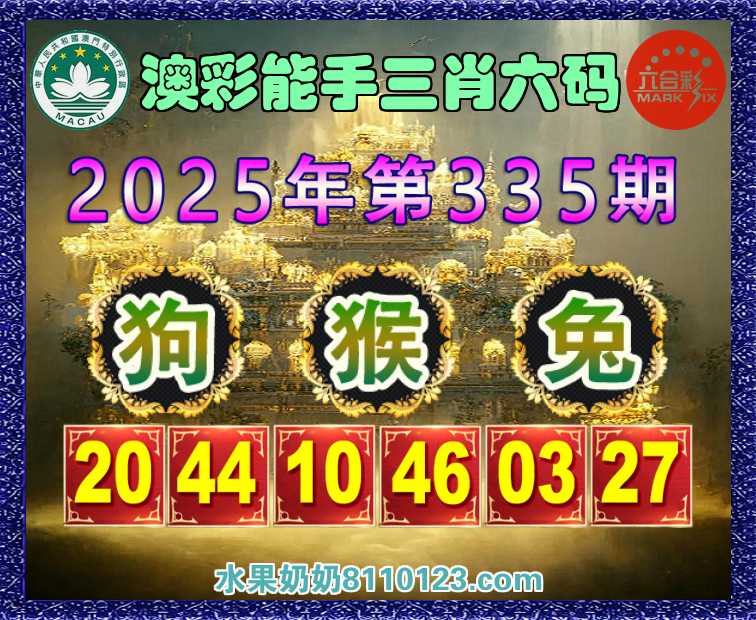 335期:『澳彩能手』 🩴三肖六码🩴【狗猴兔】开:狗44准