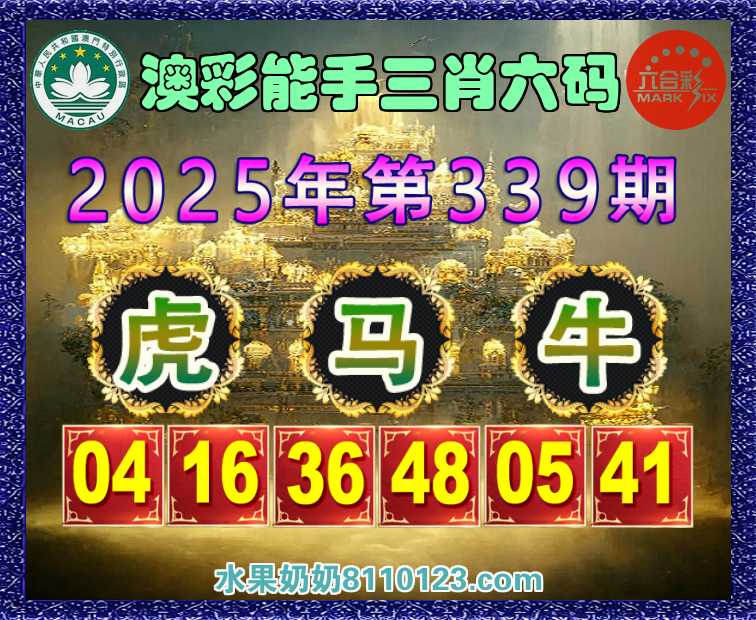 339期:『澳彩能手』 🩴三肖六码🩴【虎马牛】开:马48准
