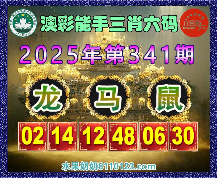 341期:『澳彩能手』 🩴三肖六码🩴【龙马鼠】开:鼠06准