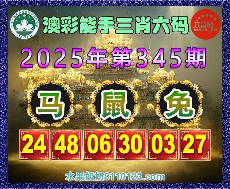 345期:『澳彩能手』 🩴三肖六码🩴【马鼠兔】开:马24准